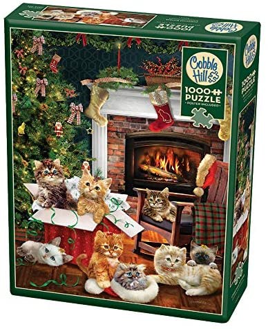 The home is full of jolly as the Christmas Kittens wait patiently near the Christmas tree to see what's in their stockings by the fireplace. Take an adventure with Cobble Hill's 1000 piece random cut puzzle that includes a reference poster.