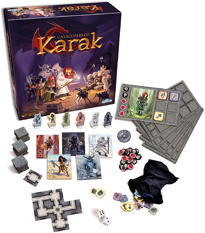 Karak is a great introductory strategy game for players new to role-playing games. Players select their character, then enter the Catacombs of Karak to search for treasure. Tile by tile, players uncover the catacombs while fighting monsters and equipping themselves with weapons and spells. To win, players must outsmart their opponents, slay the red dragon, and collect the most treasure.